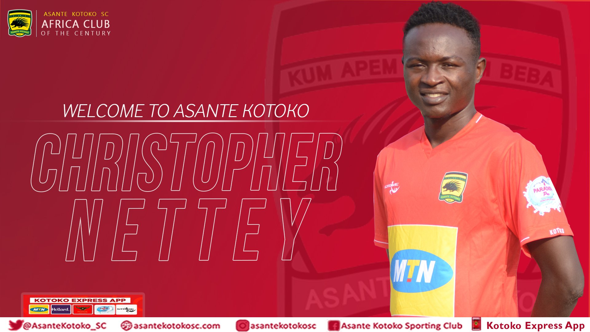 Asante Kotoko Sc On Twitter Right Back Christopher Nettey Has Joined Us On A Three Year Deal From Attram De Visser Soccer Academy Aksc Welcomenettey Https T Co Diufvgytov