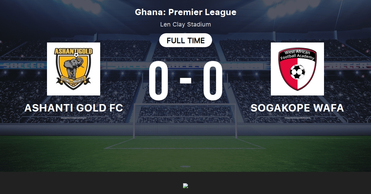 Ashanti gold vs sogakope. Ashanti Gold v Sogakope Wafa Ghana Premier League Score0-0 Corner7-4 1x2 odds. Jul 18 300 pm Ghana Premier League GPL 2020-2021 Nana Agyeman Badu II Park - Dormaa Aduana stars 2 Karela United 1. Sogakope WAFA vs Ashanti live.