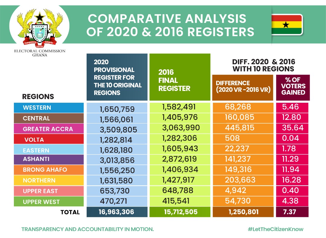 Electoral Commission Of Ghana On Twitter Comparative Analysis Of 2020 2016 Registers Letthecitizenknow