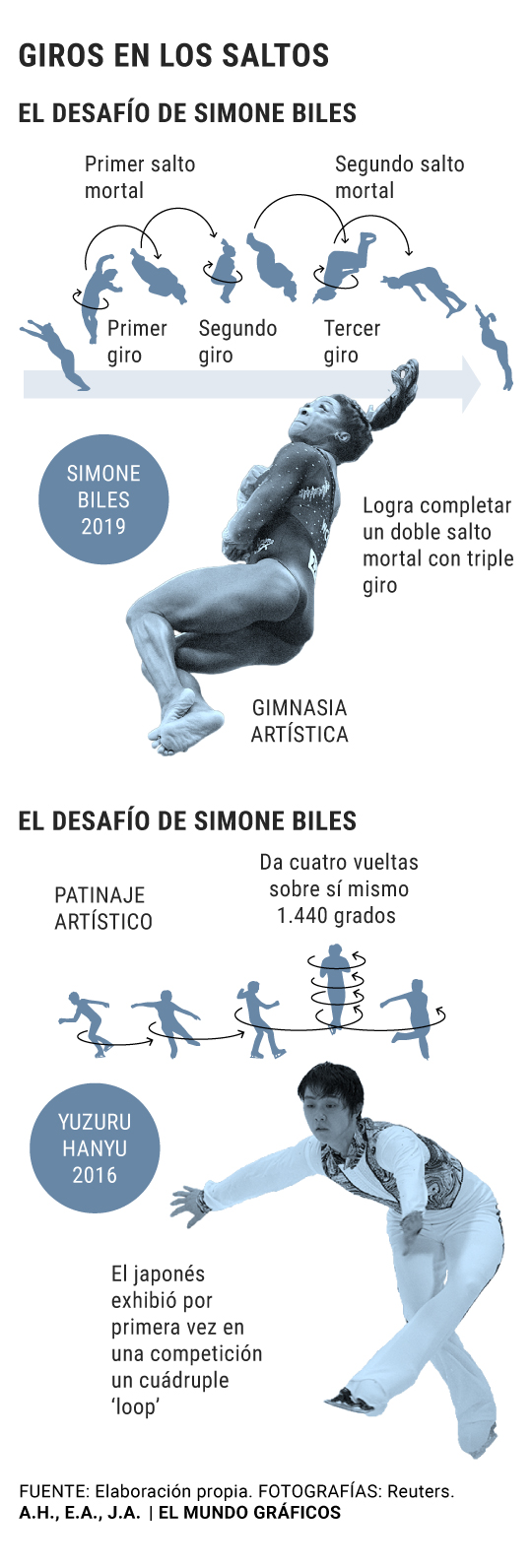 With this much kinetic energy you could throw a tennis ball straight up at 857 kmh and it would reach a height of almost 3 km assuming no air resistance. Biles is the 19 times world championship gold medalist and 4 times olympic gold medalist. Johnson said her 4-foot-8-inch height and small stature gives her more time in the air to do high-difficulty skills and it makes her unstoppable when combined with her strong muscular build.